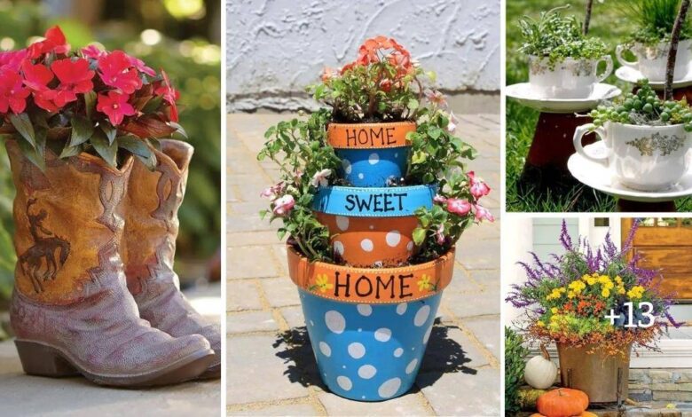 It is a funny and unique way to repurpose old and unused chairs and turn them into stunning plant containers. There are a multitude of ideas, from a welcome chair planter to a garage sale one.